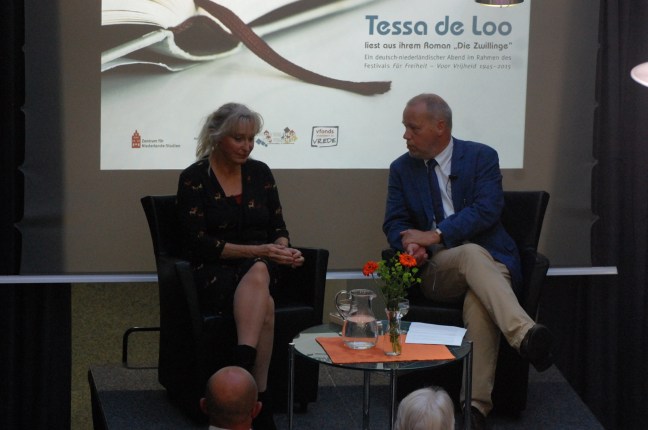 Zum Auftakt des deutsch-niederländischen Festivals ‚Für Freiheit – Voor Vrijheid 1945-2015‘, das am 27. August in Münster stattfand (siehe Beiträge unten), traf Prof. Dr. Friso Wielenga die niederländische Schriftstellerin Tessa de Loo zu einem Podiumsgespräch im Haus der Niederlande in Münster. Sie las am Vorabend aus ihrem Roman De tweeling – die Zwillinge und verdeutlichte, den Zwist zwischen Selbstverständnis und dem wirklichen Verstehen. Ein Problem, das zurzeit sehr aktuell erscheint.